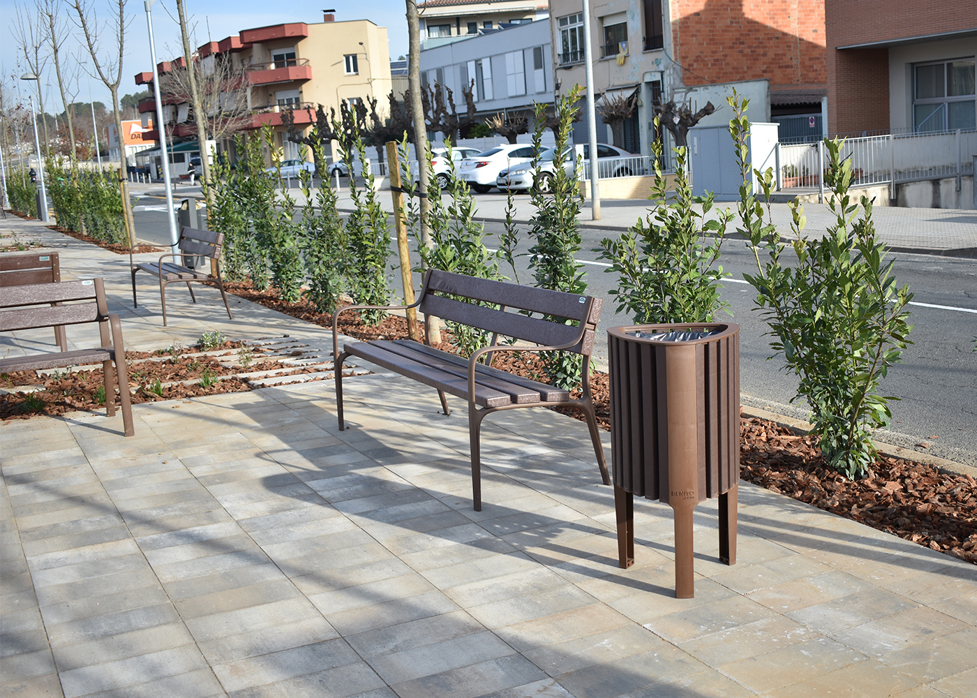 Banco de diseño CITIZEN ECO, medidas totales (largo x alto x profundo) 1800x810x650 mm, fabricado en plástico ReBnew (el polímero reciclado de BENITO que está producido íntegramente a partir de envases del contenedor amarillo y no requiere ningún tipo de mantenimiento) tanto los piés como el asiento y el respaldo con refuerzo de sección cuadrada metálico en el asiento para mayor resistencia estructural.Un banco al que no le afecta ni la humedad ni la corrosión. Tornillería de acero inoxidable. Preparado para anclaje con pernos de expansión M10 según superficie y proyecto.
