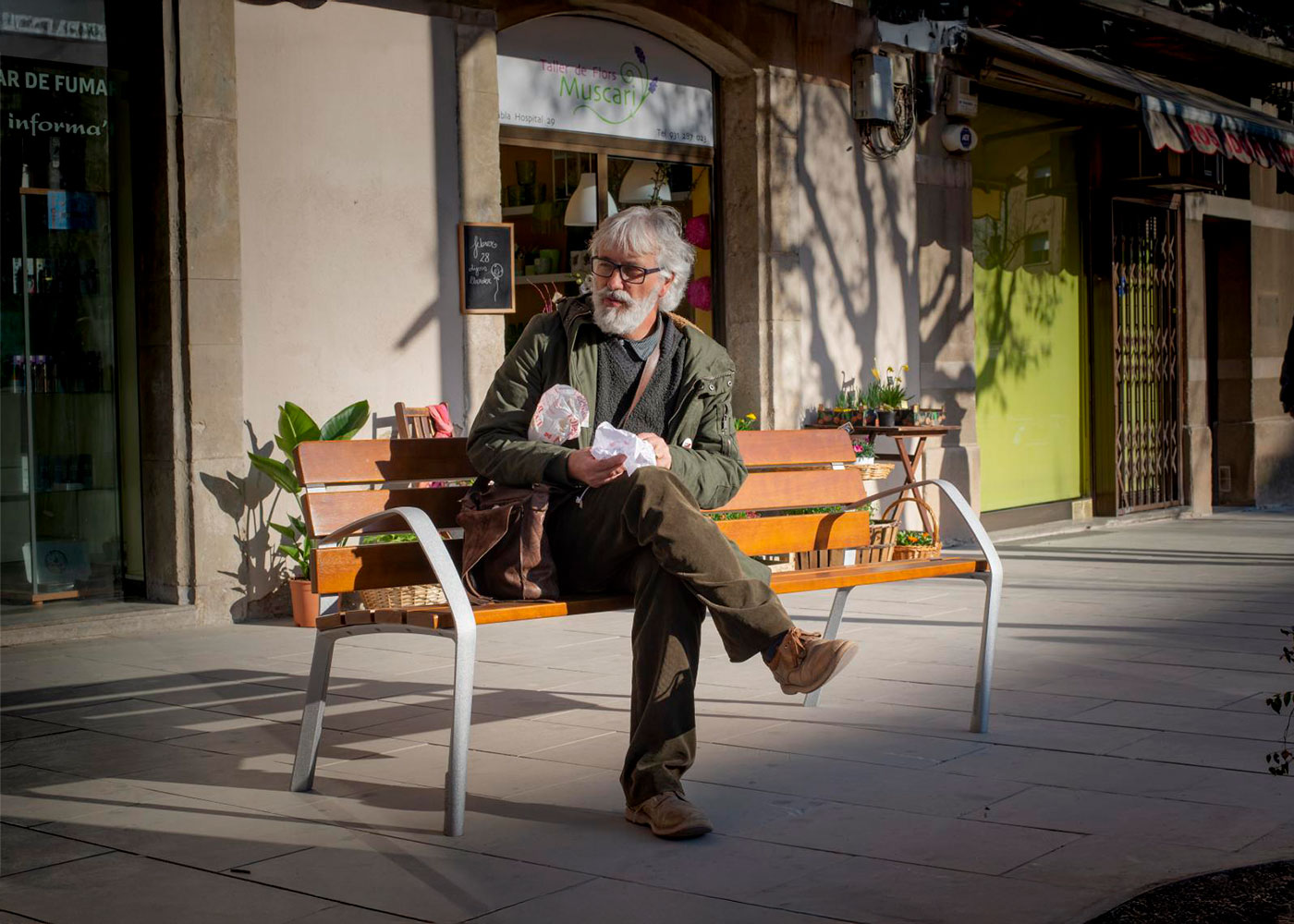 Banco de diseño NEOBARCINO, de 1800 mm de largo con asiento segun normativa de accesibilidad de 450 mm de alto y apoyabrazos, de diseño sobrio y elegante, fabricado con pies de fundición dúctil (tratados con el proceso Ferrus el protector de triple capa para el hierro,que garantiza una óptima resistencia a la corrosión). Acabado imprimación epoxi y pintura poliéster en polvo color gris martelé. Seis tablones de madera tropical natural (tratados con recubrimiento de triple capa Lignus, protector fungicida, insecticida e hidrófugo). Tornillería de acero inoxidable. Anclaje recomendado, mediante cuatro pernos de expansión M10 según superficie y proyecto.