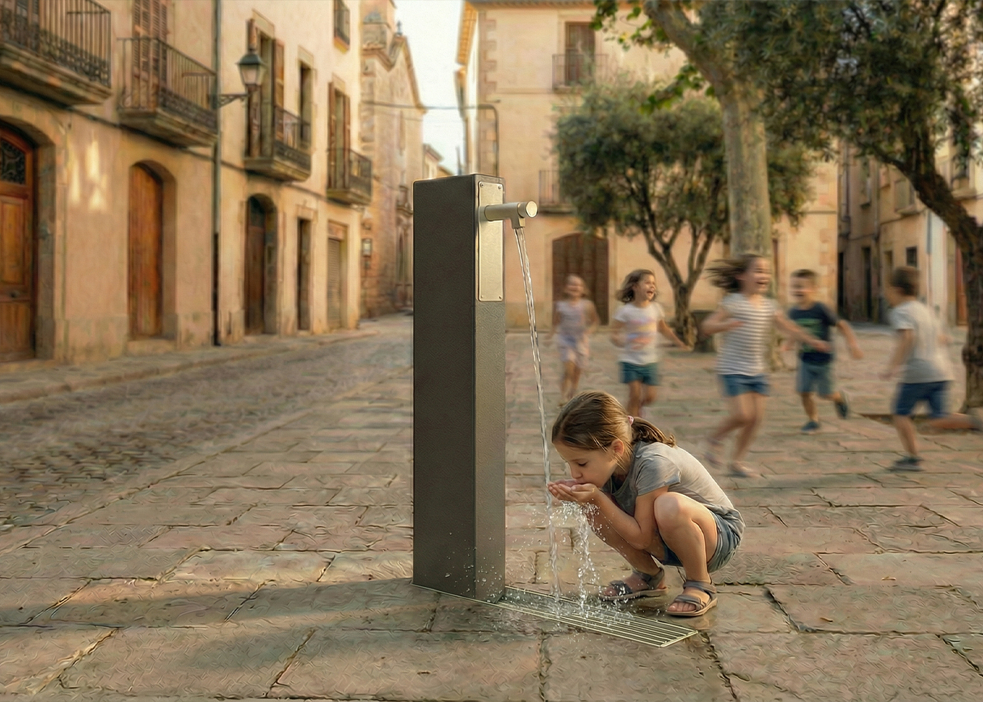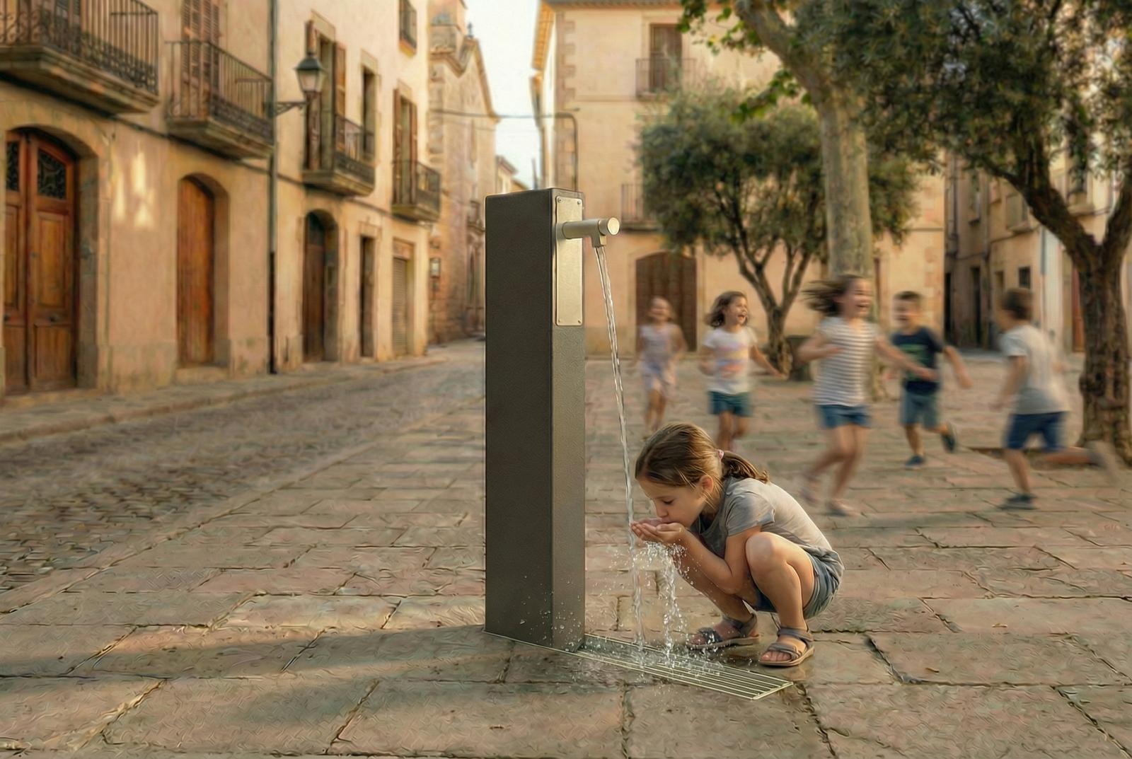 La Fuente Corc tiene una estructura sobria con un cuerpo cuadrado de hierro con tratamiento Ferrus, proceso protector del hierro que garantiza una óptima resistencia a la corrosión.