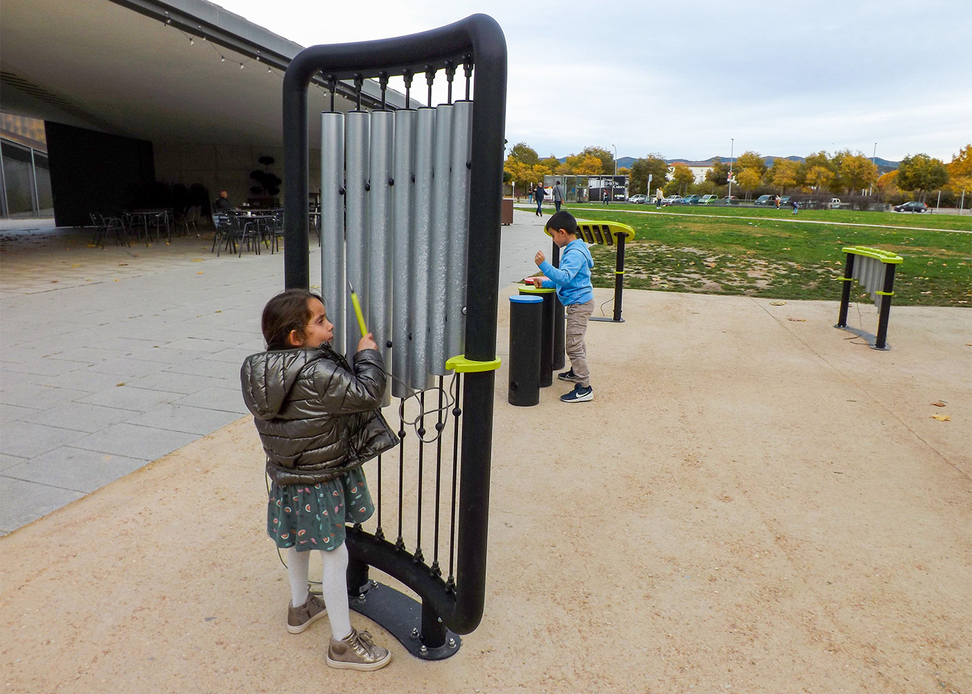 En Vic, frente al complejo cultural L’Atlàntida, se han instalado cinco elementos musicales urbanos para que los niños descubran la música jugando: Xilo, Mambo, Samba, Conga y Salsa.