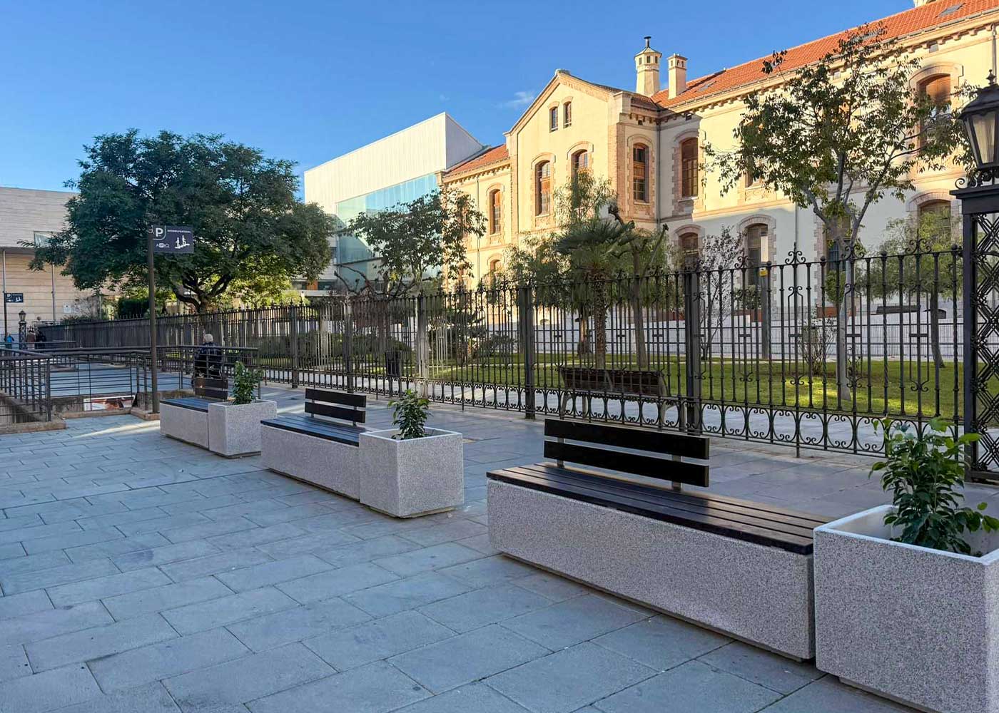 Castellón de la Plana renovó el mobiliario urbano del centro con bancos y jardineras KUBE, combinando hormigón y madera para crear espacios resistentes, confortables y sin mantenimiento.