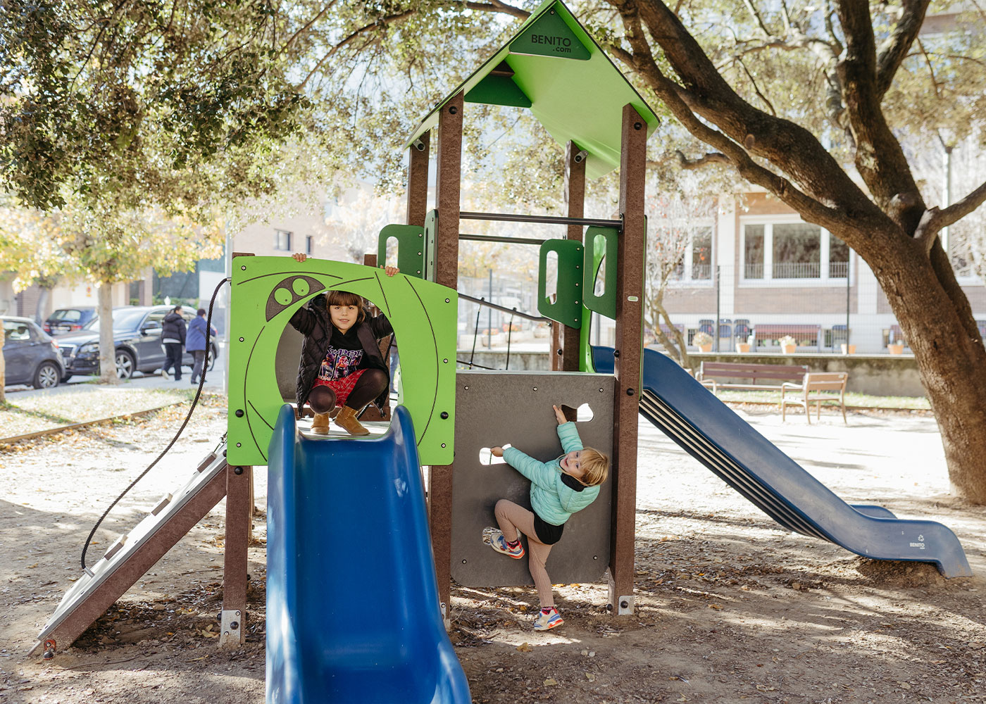 Uno de los parques de Centelles, en Barcelona, se renueva con juegos infantiles y mobiliario urbano fabricados con ReBnew, creando un espacio sostenible, seguro y accesible para todas las edades.