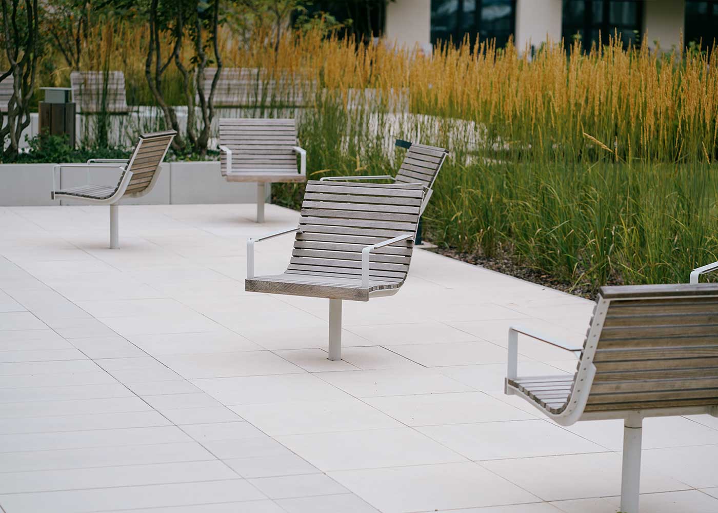 El complejo residencial Meydan North, en Dubái, incorpora bancos Roda para equipar sus espacios exteriores con soluciones urbanas duraderas, funcionales y acorde con el entorno residencial.