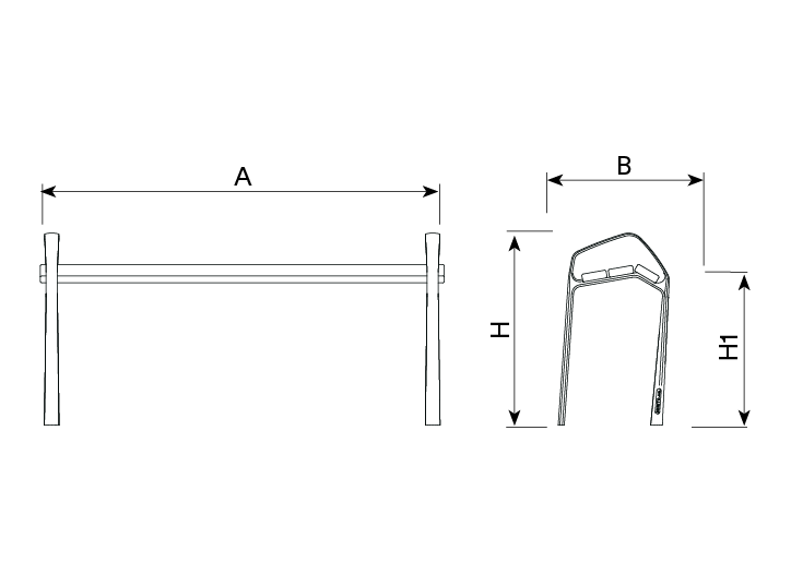 Apoyo isquiático urbano de diseño minimalista, estructura tubular continua en acero galvanizado tratado mediante el proceso Ferrus, un protector de triple capa para el hierro que garantiza una óptima resistencia a la corrosión, con formas redondeadas y líneas suaves, compuesto por dos patas verticales y una barra superior horizontal ergonómica ligeramente inclinada.Acabado en pintura color RAL 9006 superficie uniforme y de alta calidad. Opcional acabado en acero inoxidable. Preparada para anclaje empotrado en el suelo.