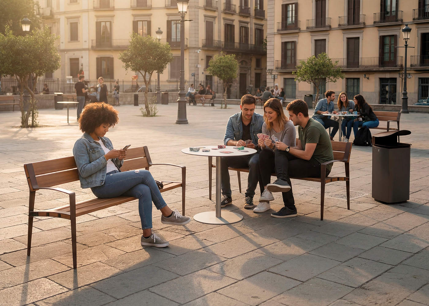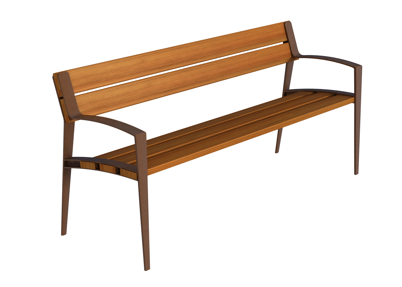 Banco de diseño MINSK de, medidas totales (largo x alto x profundo) 1800x820x590 mm, fabricado con pies de fundición dúctil (tratados con el proceso Ferrus el protector de triple capa para el hierro, que garantiza una óptima resistencia a la corrosión). Acabado imprimación epoxi y pintura poliéster en polvo color marson. Cinco tablones de madera tropical natural (tratados con recubrimiento de triple capa Lignus, protector fungicida, insecticida e hidrófugo). Estructura de fundición de diseño envolvente, para proteger la fijación del tablón ante posibles impactos. Tornillería de acero inoxidable. Preparado para anclaje con pernos de expansión M10 según superficie y proyecto.
