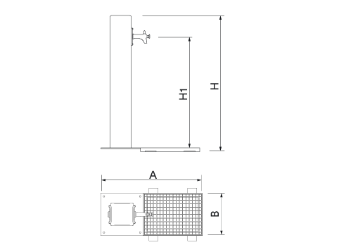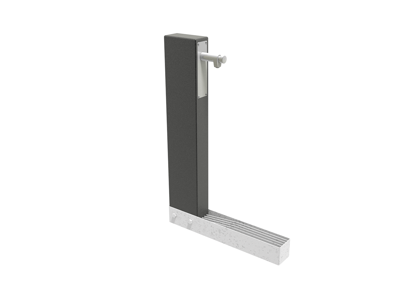 Acabado imprimación epoxi y pintura poliéster en polvo color gris martelé. Pletina fijación-grifo pulsador de acero niquelado (UM510G). Marco angular y reja sumidero de acero galvanizado.
