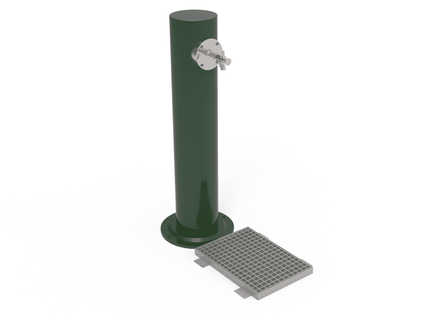Conjunto fuente de diseño EGEA SIMPLE MINI, medidas totales (Ø x alto) 195x1000 mm, fabricada en hierro (tratado con el proceso Ferrus el protector de triple capa para el hierro, que garantiza una óptima resistencia a la corrosión), incluye grifo pulsador (UM510G) con soporte en acero niquelado. Marco angular y reja sumidero de acero galvanizado. Preparado para anclaje con 4 pernos de expansión según superficie y proyecto.