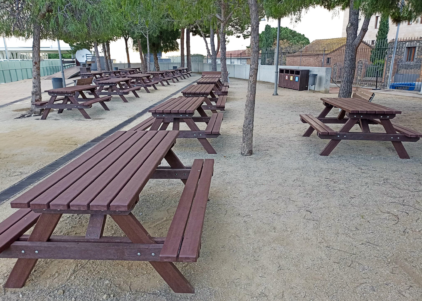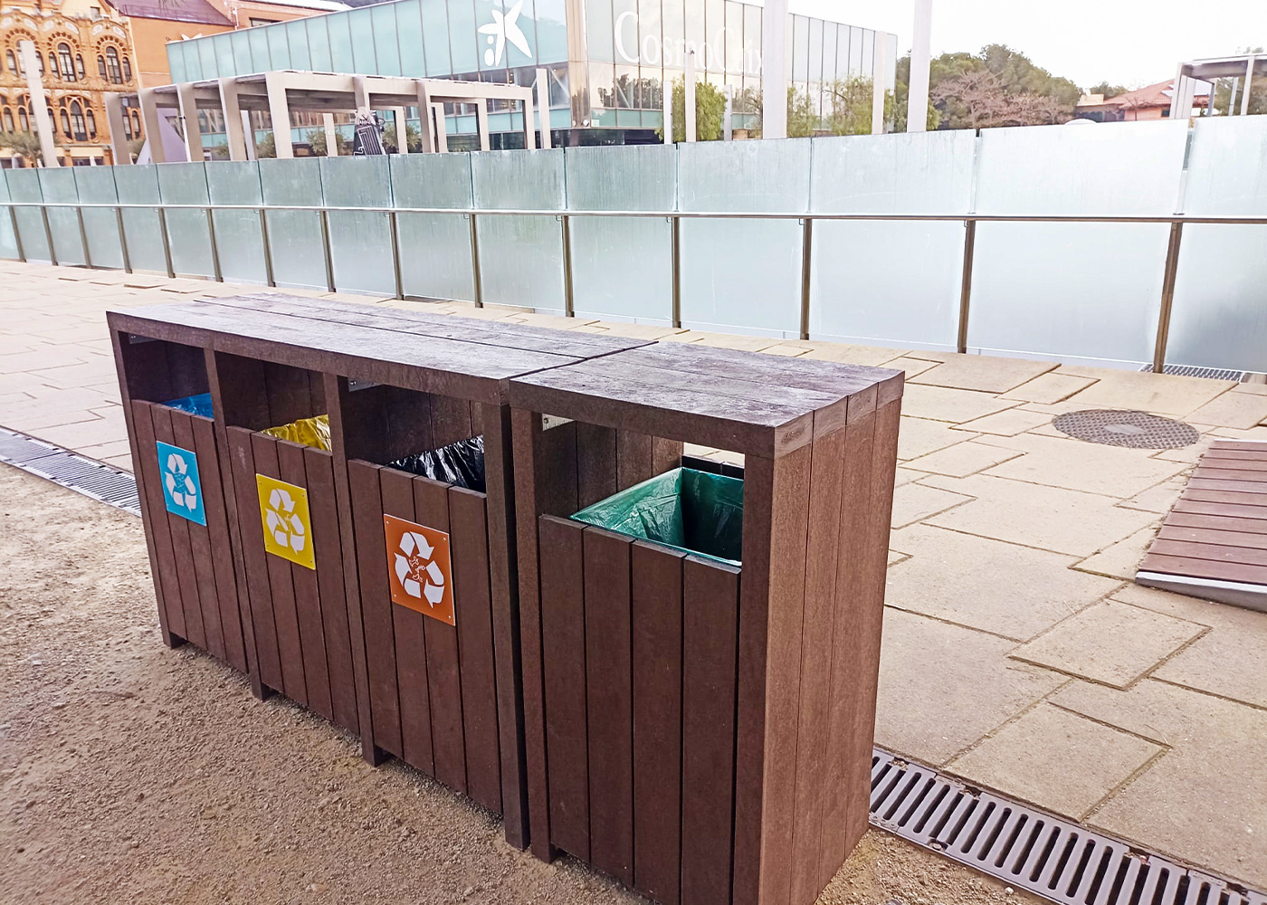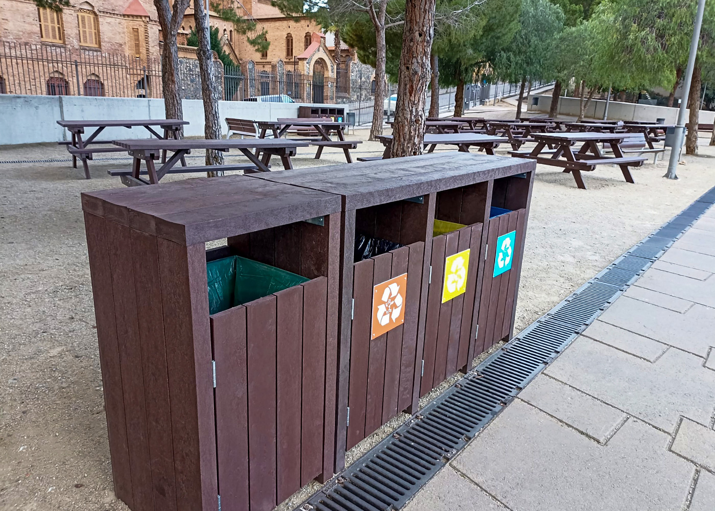 Además, en el interior del recinto se ha reforzado la funcionalidad y la sostenibilidad mediante la incorporación de mesas de picnic PIK fabricadas en ReBnew, un material reciclado y altamente resistente. Estas se complementan con jardineras también en ReBnew, que aportan orden y verde a las zonas comunes, y con papeleras PICCO de cuatro compartimentos, diseñadas para facilitar un sistema de reciclaje eficaz y promover hábitos responsables entre los visitantes. Esta intervención mejora tanto la comodidad como la gestión ambiental del equipamiento.